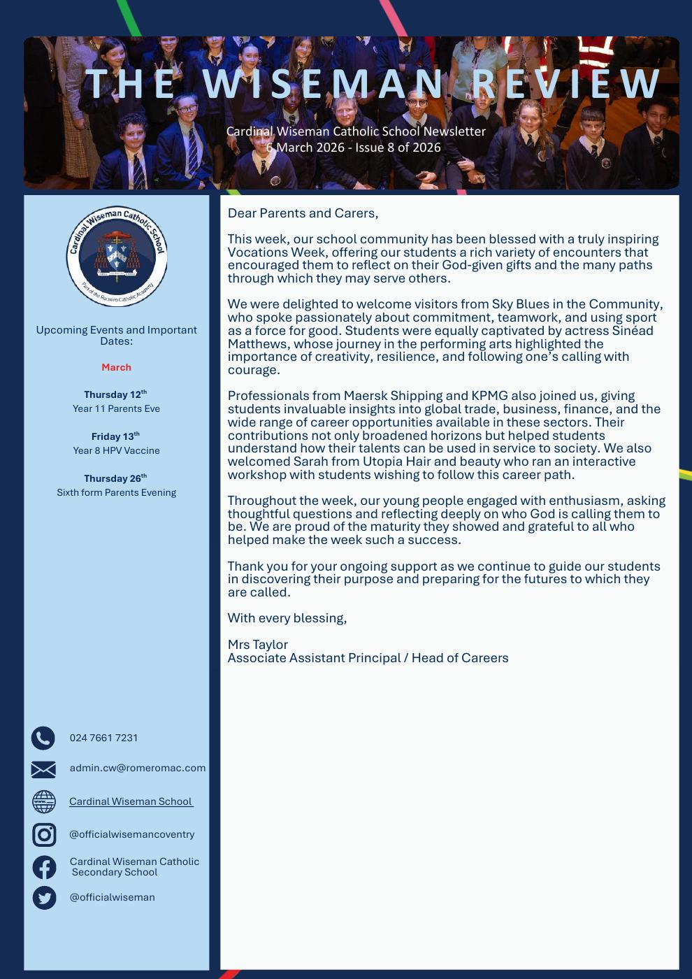 Welcome to Cardinal Wiseman Sixth Form